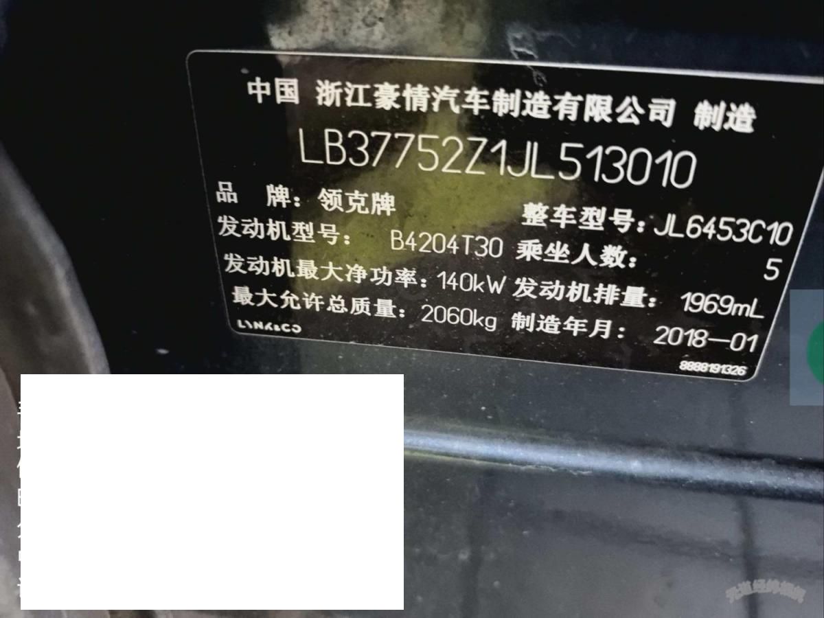 初次登记日期 2018-03-19 车辆名称 领克01