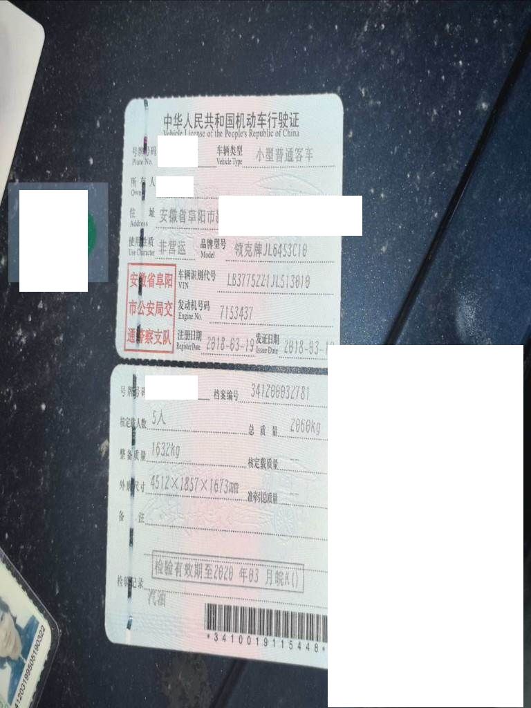 车辆归属地 安徽省阜阳市 车辆停放仓库 安徽省阜阳市