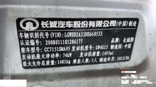 初次登记日期 2013-09-23 车辆名称 长城M4