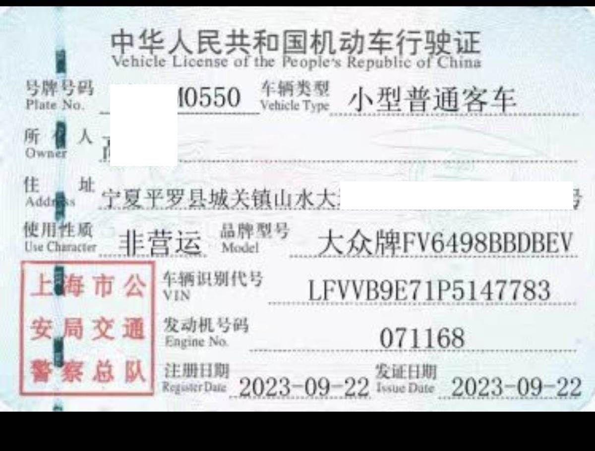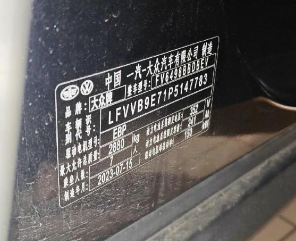 初次登记日期 2023-09-22 车辆名称 大众 ID.6