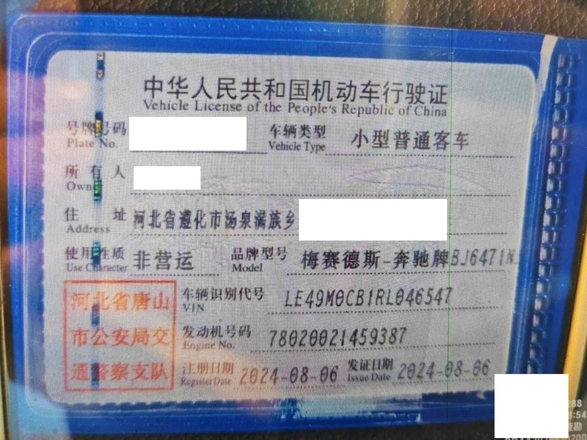 初次登记日期 2024-08-06 车辆名称 奔驰牌