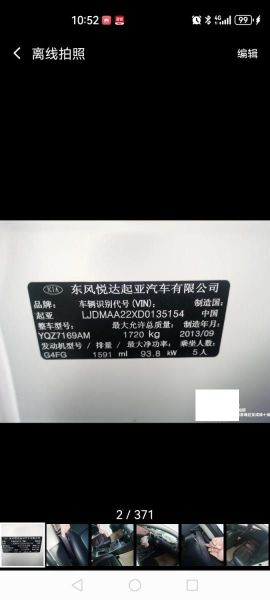 初次登记日期 2013-12-06 车辆名称 起亚K3