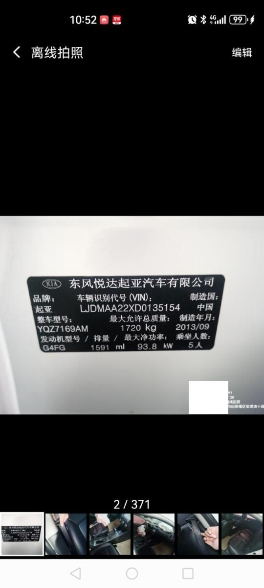 车牌号 皖****** 品牌 起亚