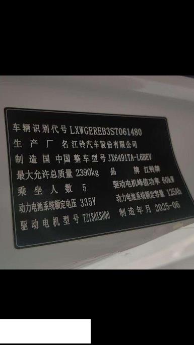 初次登记日期 2025-08-04 车辆名称 江铃 E福顺