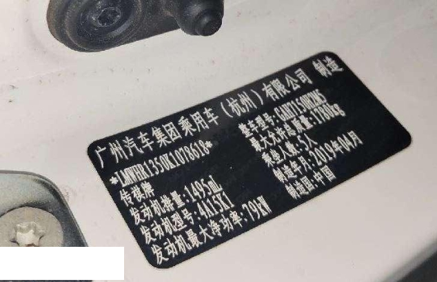 初次登记日期 2019-06-26 车辆名称 广汽传祺 传祺GS3
