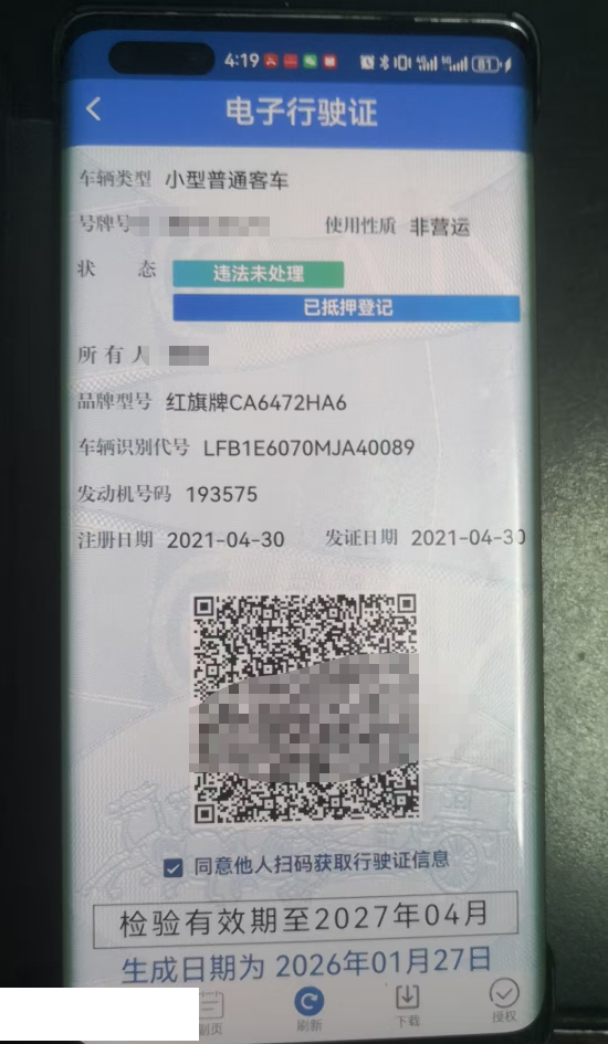 初次登记日期 2021-04-30 车辆名称 红旗HS5