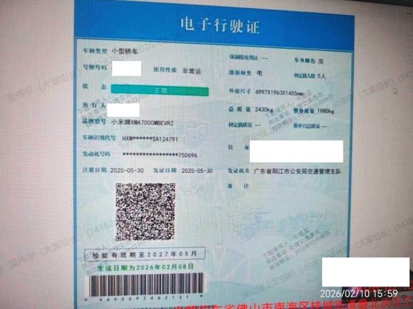 初次登记日期 2025-05-30 车辆名称 小米汽车 小米