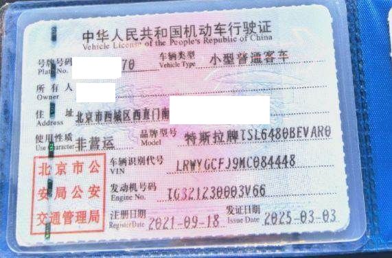 车牌号 京****** 品牌 特斯拉