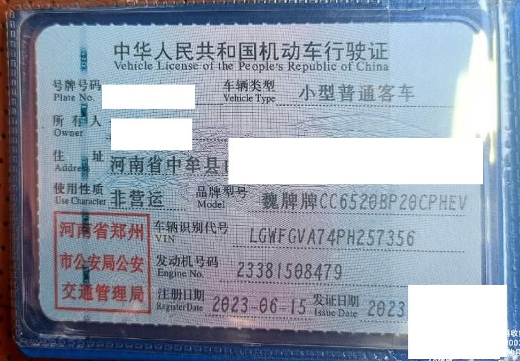初次登记日期 2023-06-15 车辆名称 魏牌 蓝山