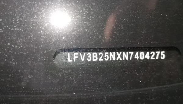 底盘号码 LFV3B25NXN7404275 变速箱类型 自动