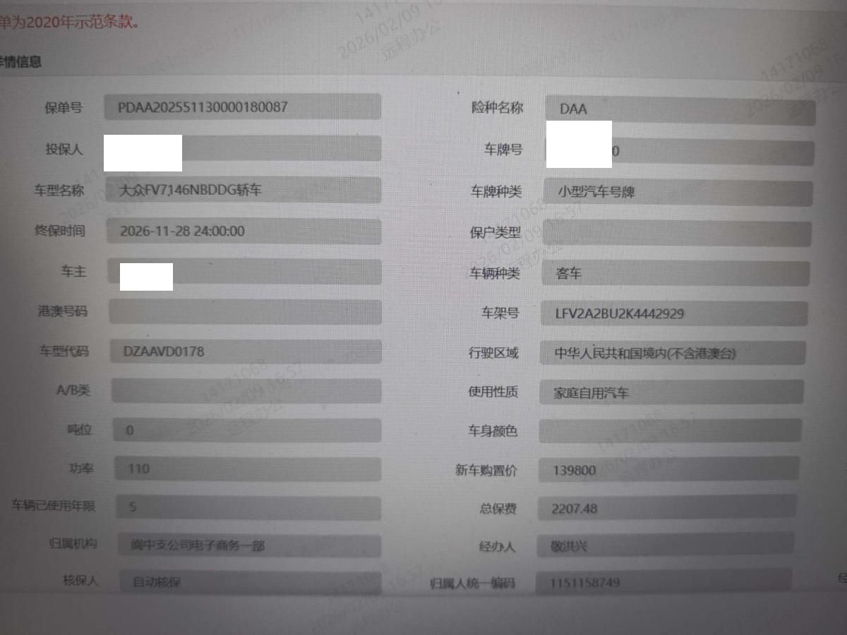 车牌号 川****** 品牌 大众