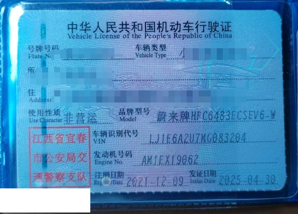初次登记日期 2021-12-09 车辆名称 蔚来牌