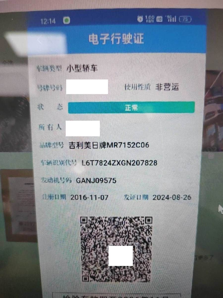 初次登记日期 2016-11-07 车辆名称 吉利汽车 帝豪