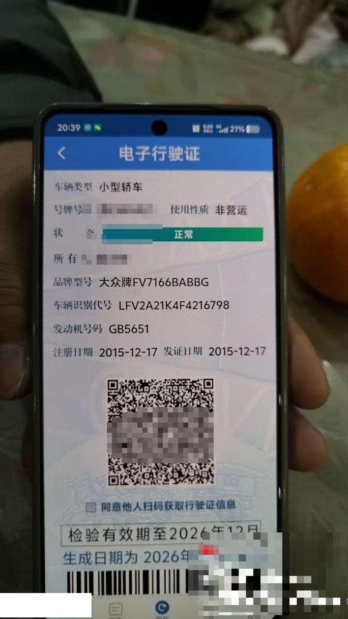 初次登记日期 2015-12-17 车辆名称 大众 速腾