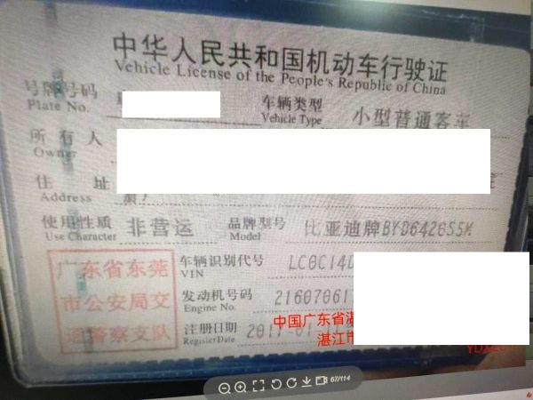 车辆归属地 广东省东莞市 车辆停放仓库 广东省湛江市湛江市
