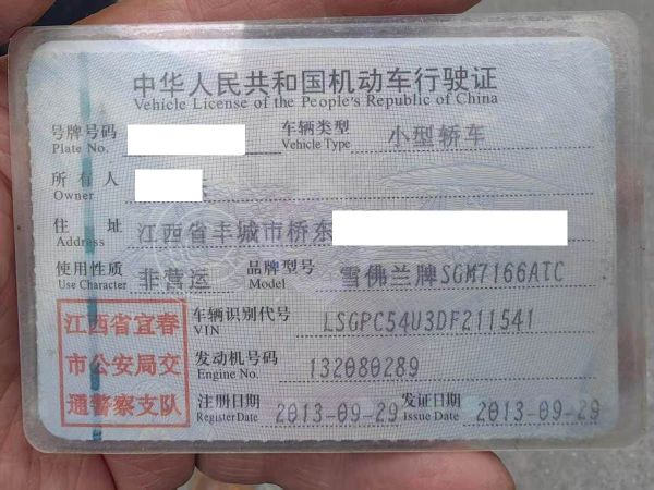 车牌号 赣****** 品牌 雪佛兰