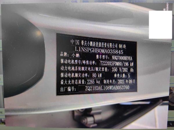初次登记日期 2021-09-23 车辆名称 小鹏牌