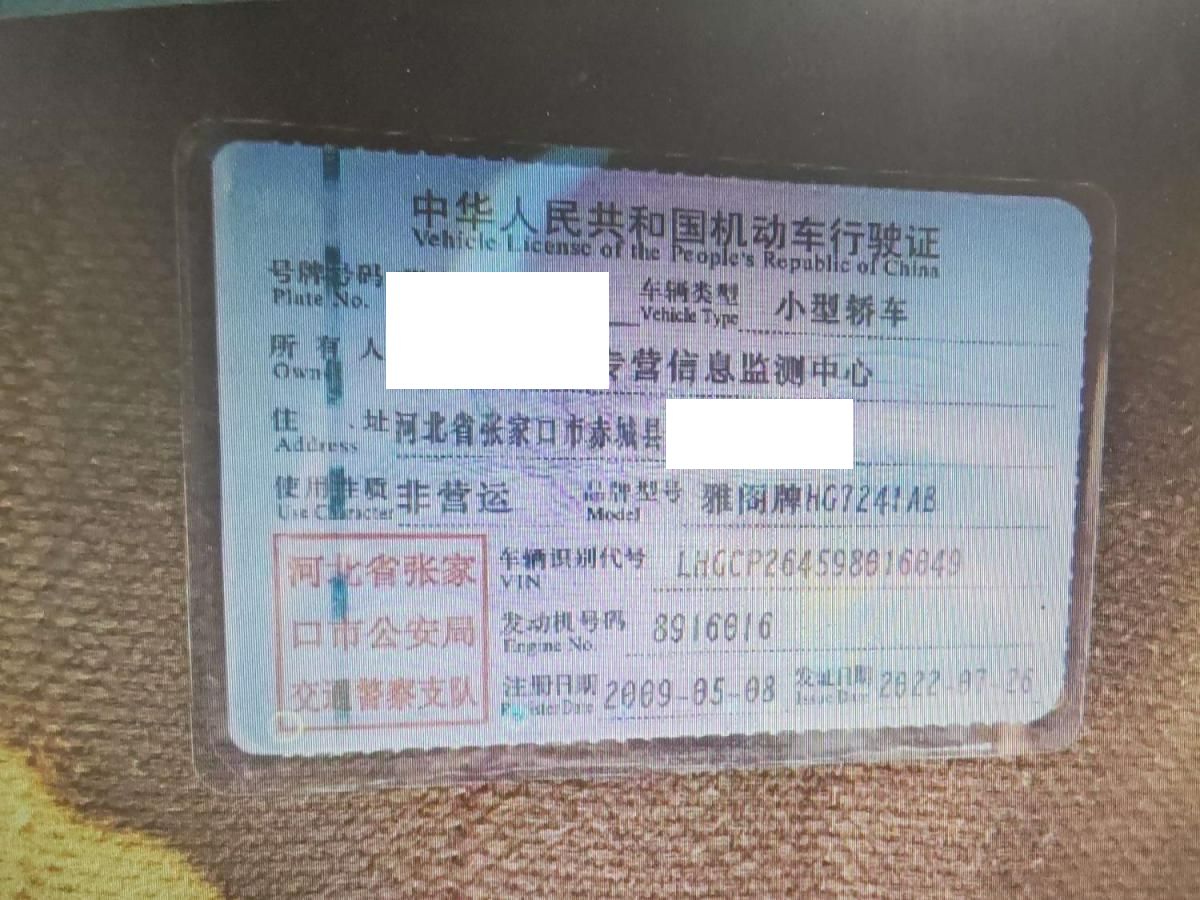 初次登记日期 2009-05-08 车辆名称 本田 雅阁