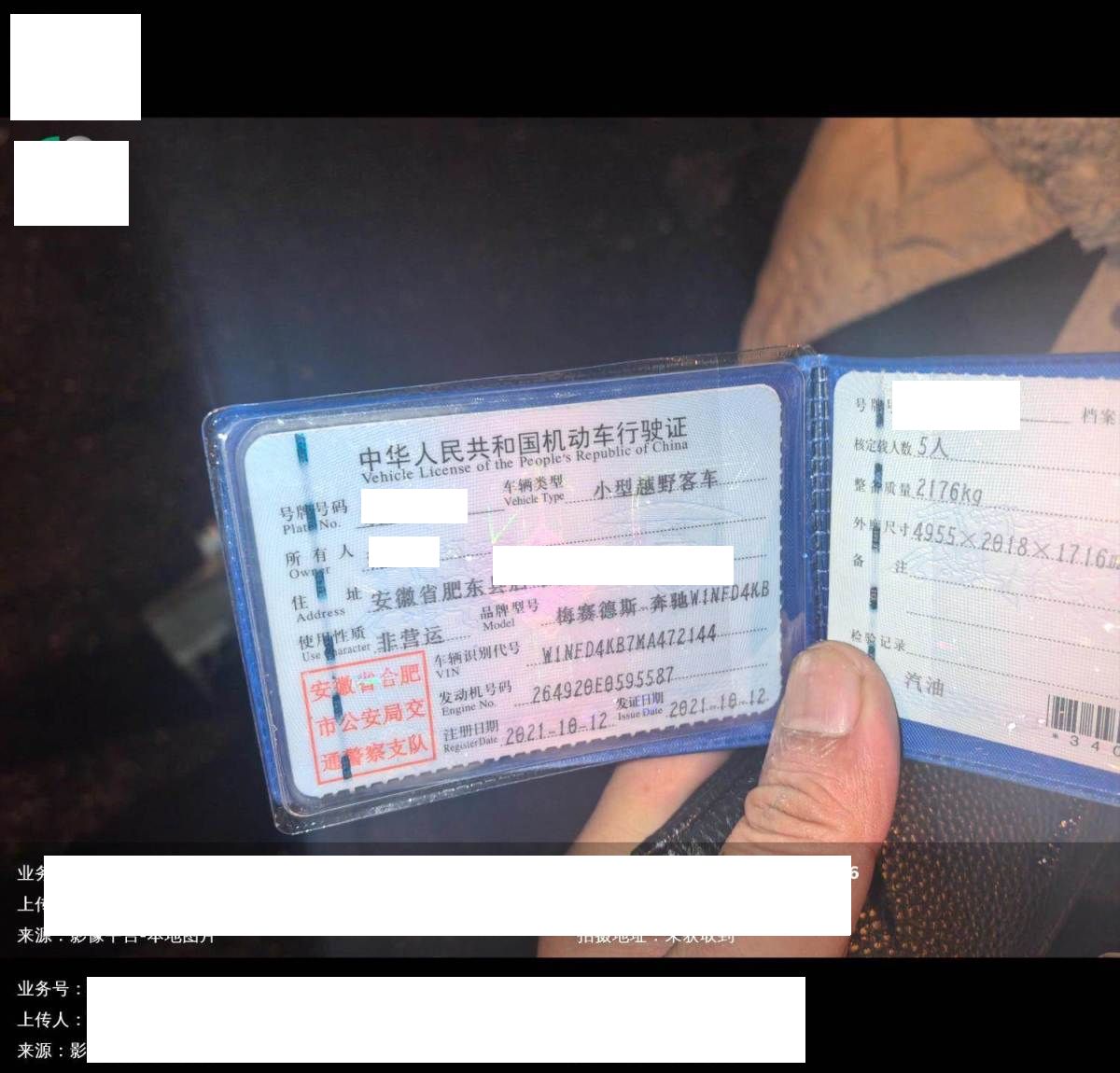 车牌号 皖****** 品牌 奔驰
