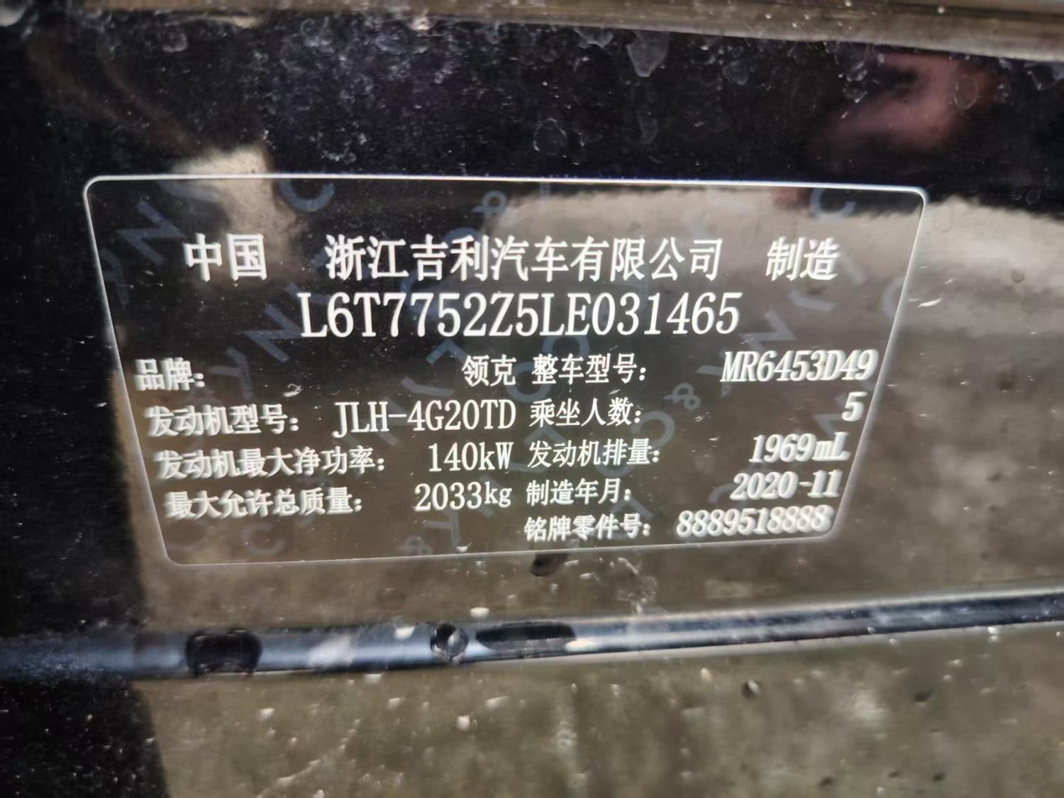 底盘号码 L6T7752Z5LE031465 变速箱类型 手自一体