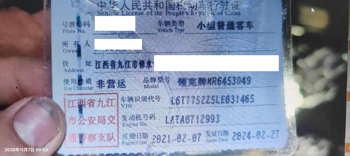 车辆归属地 江西省九江市 车辆停放仓库 江西省九江市九江市