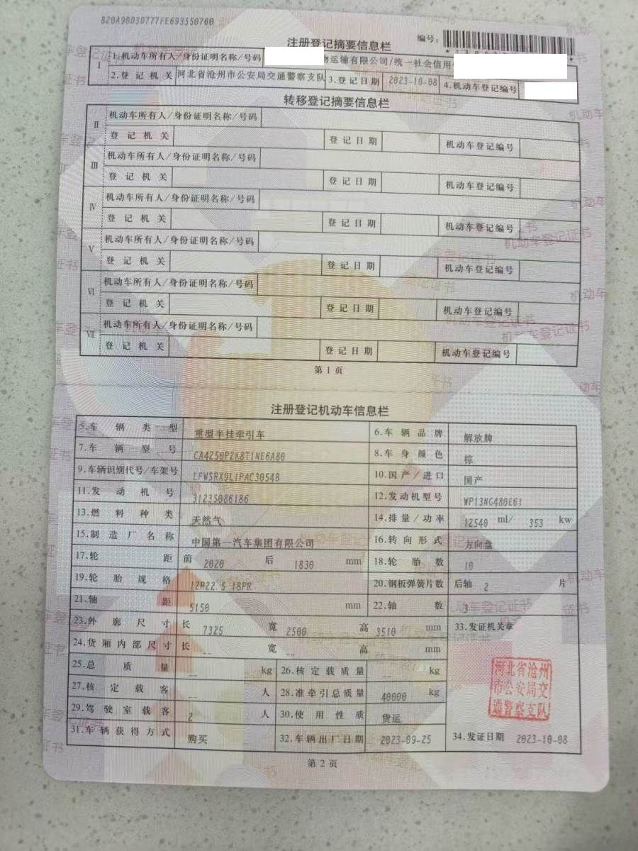 车牌号 冀****** 品牌 解放