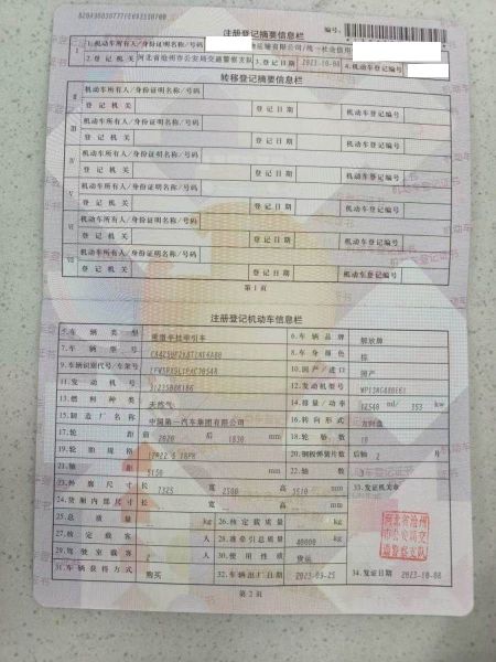 初次登记日期 2023-10-08 车辆名称 青岛解放