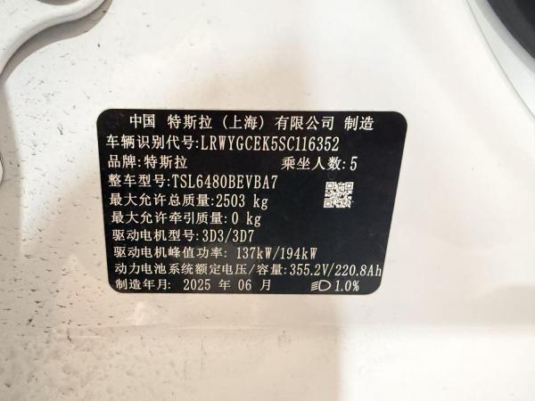 初次登记日期 2025-06-28 车辆名称 特斯拉 Model