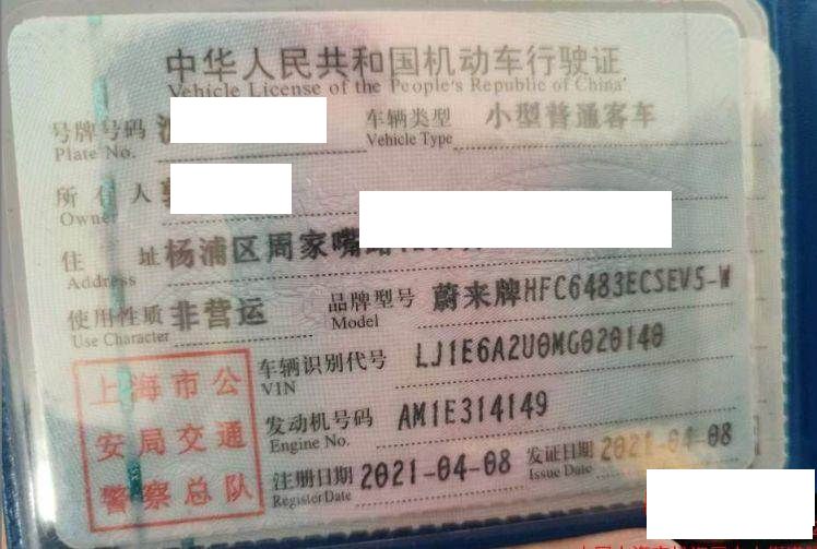 初次登记日期 2021-04-08 车辆名称 蔚来牌