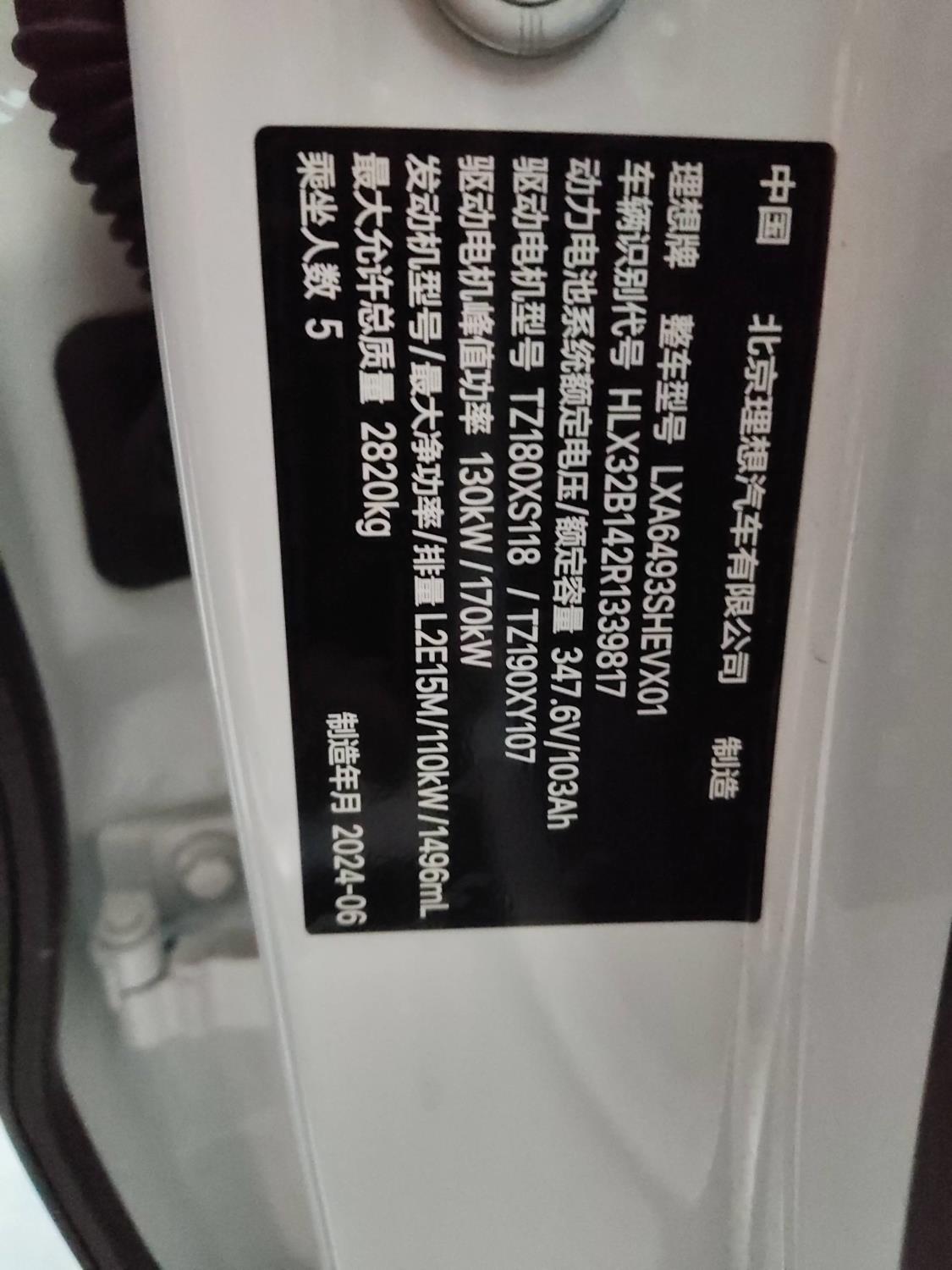 初次登记日期 2024-01-07 车辆名称 理想汽车 理想