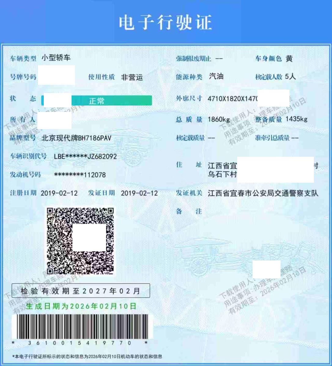 车牌号 赣****** 品牌 现代