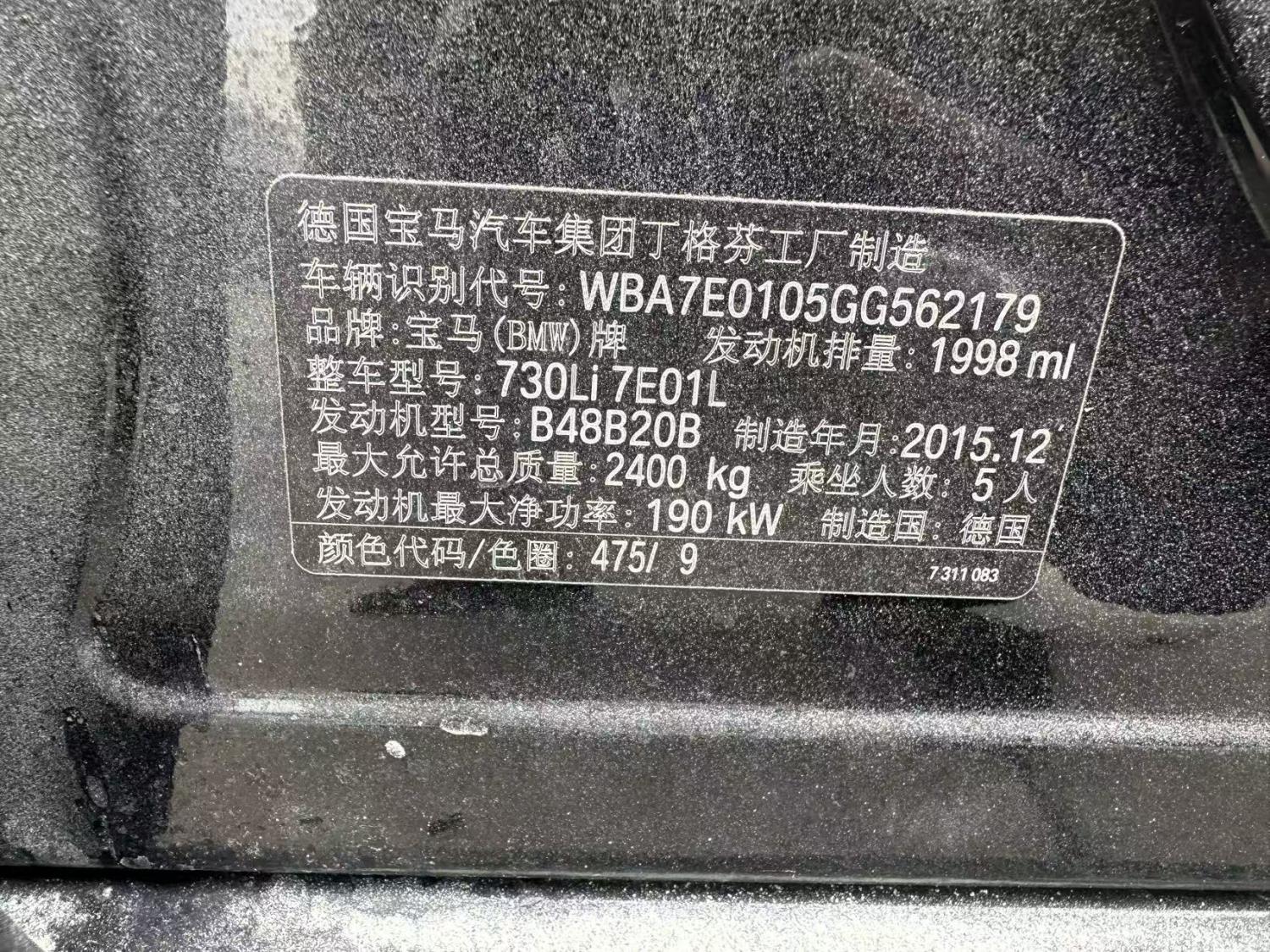 初次登记日期 2017-01-04 车辆名称 宝马7系