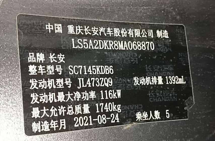 初次登记日期 2021-09-15 车辆名称 长安 逸动