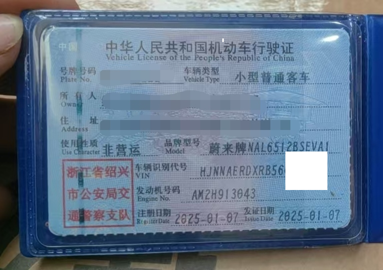 初次登记日期 2025-01-07 车辆名称 蔚来牌