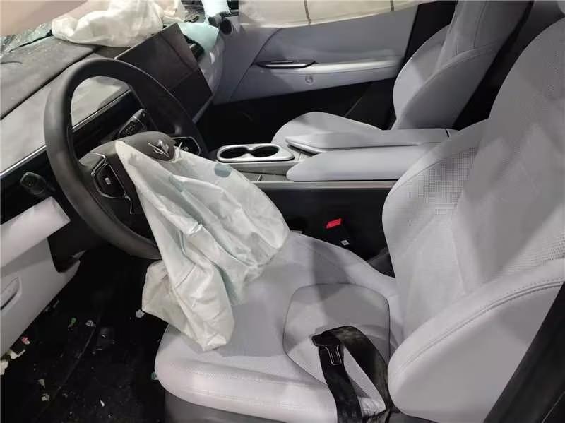 本车乘客有受伤,无死亡 未拆解,有抵押(车辆抵押贷款),前后损失,悬挂系统疑似有损失,电池组有损失,无重大历史事故,无水淹火烧情况。 车损原因:碰撞。 车辆种类:事故; 自行考虑解码费用;新能源车随车充电桩等附件不包含在标的范围内。为规避电池自燃风险,电池包与车身分离不属于重大拆检。;只能修复不可报废;车子受损严重,室外停放,买家需要承担雨雪淋的风险,请谨慎出价。