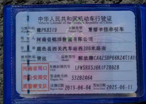 初次登记日期 2019-06-04 车辆名称 解放 解放J6(P6)