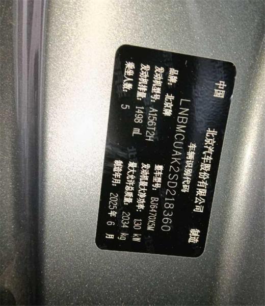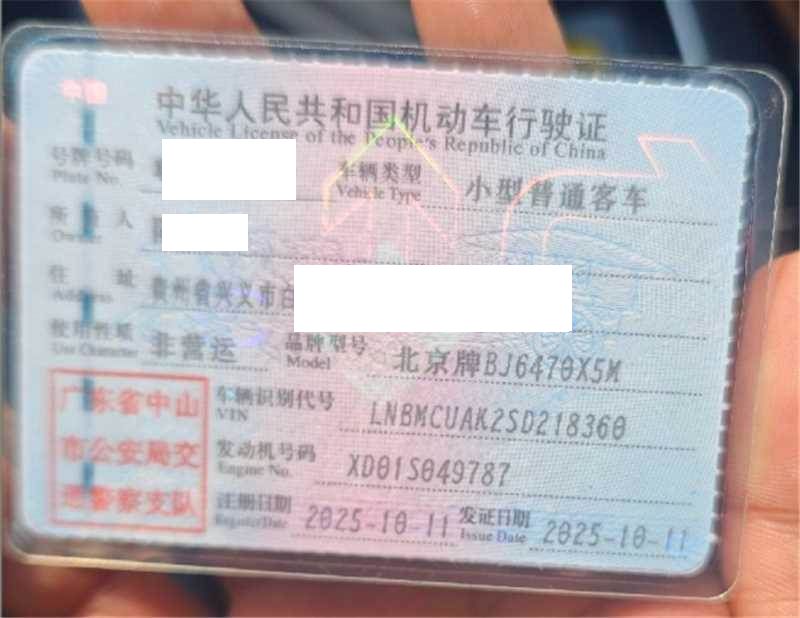初次登记日期 2025-10-11 车辆名称 北京越野