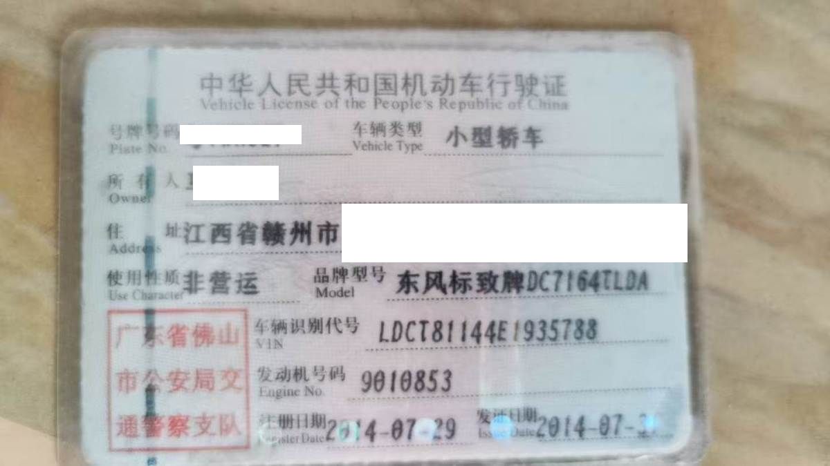 车牌号 粤****** 品牌 东风标致
