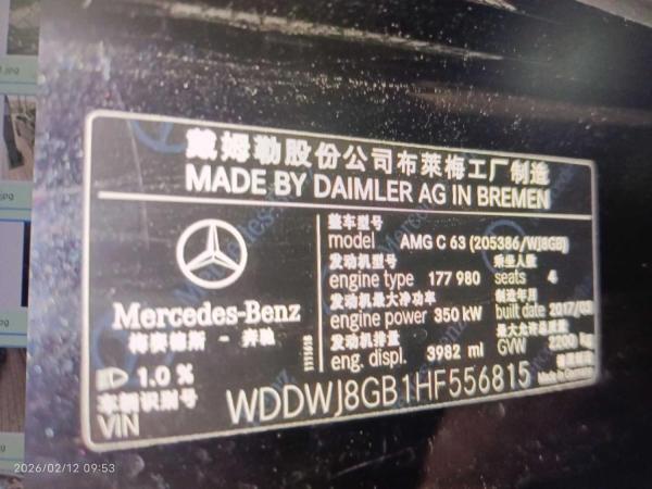 初次登记日期 2017-09-07 车辆名称 奔驰C级AMG