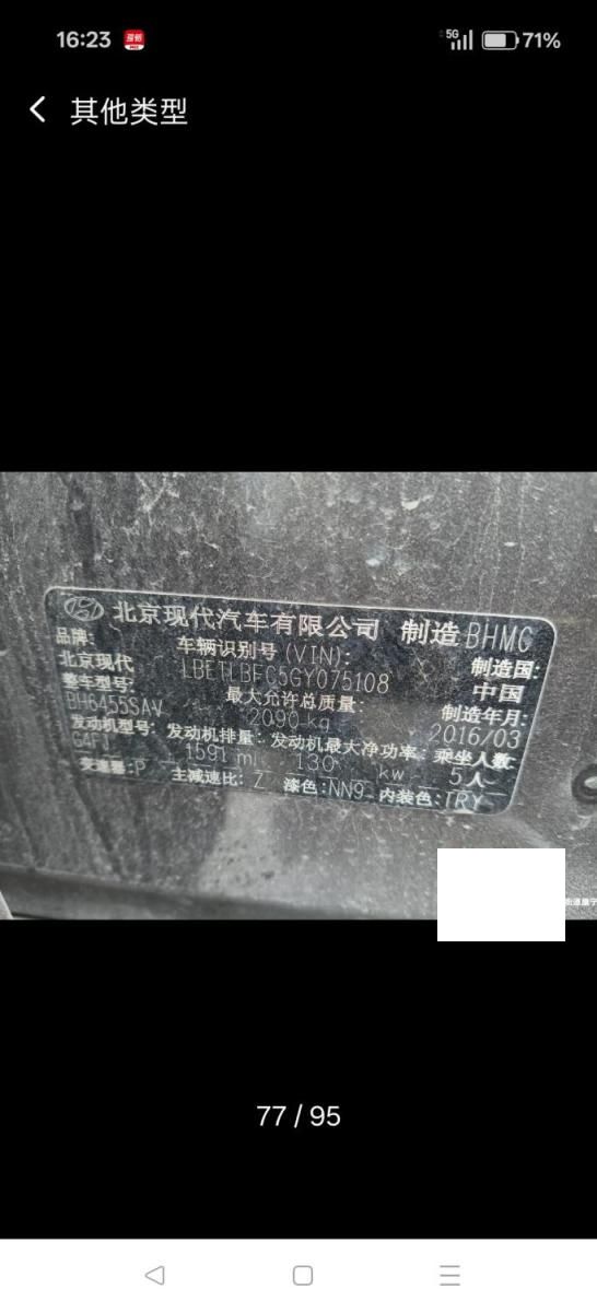 底盘号码 LBETLBFC5GY075108 变速箱类型 自动