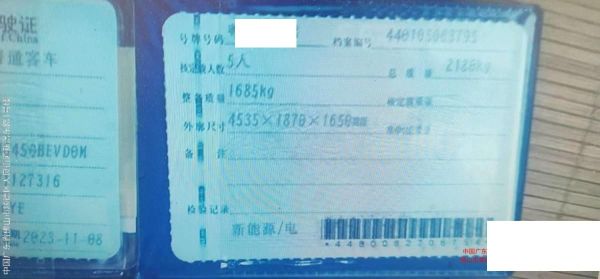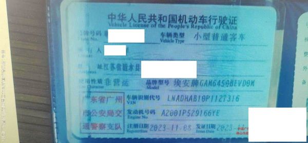 初次登记日期 2023-11-08 车辆名称 埃安牌