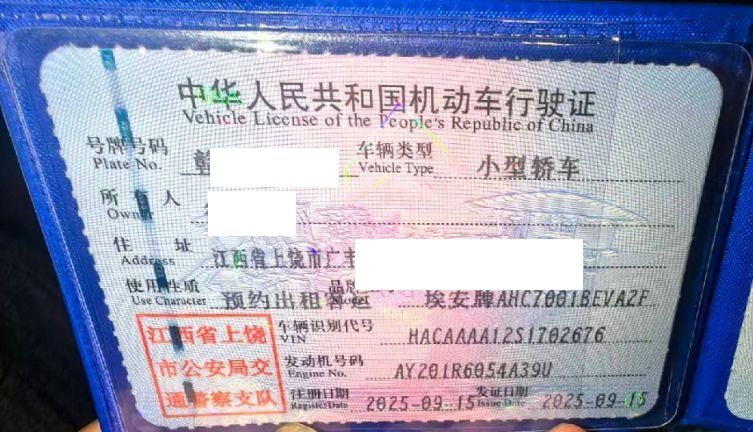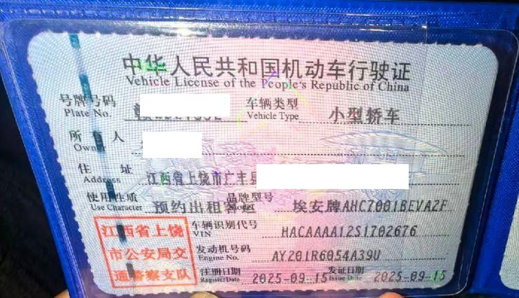 初次登记日期 2025-09-15 车辆名称 埃安牌