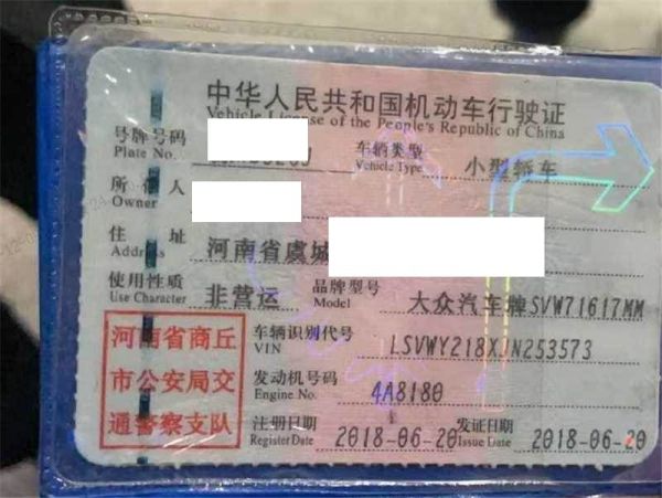 初次登记日期 2018-06-20 车辆名称 大众 朗逸