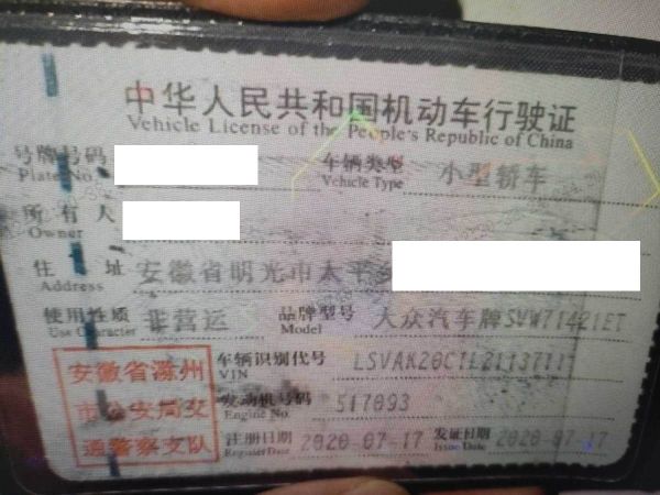 车辆归属地 安徽省滁州市 车辆停放仓库 安徽省滁州市滁州市