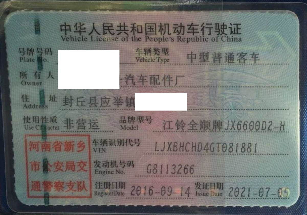 车牌号 豫****** 品牌 江铃