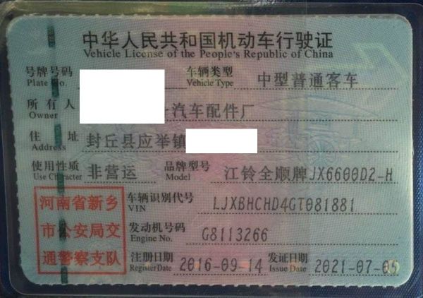 车辆归属地 河南省新乡市 车辆停放仓库 河南省新乡市新乡市