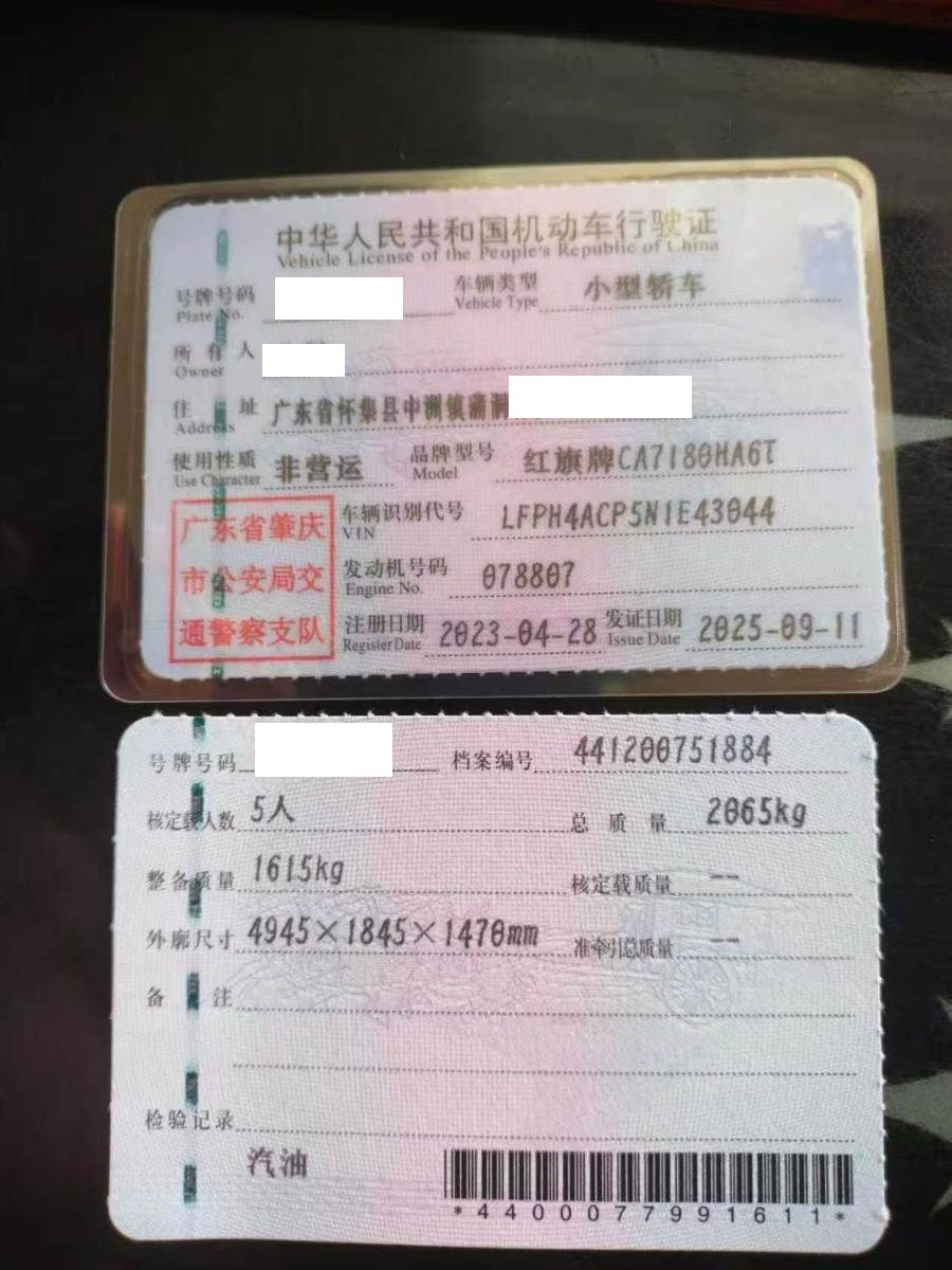 车牌号 粤****** 品牌 红旗
