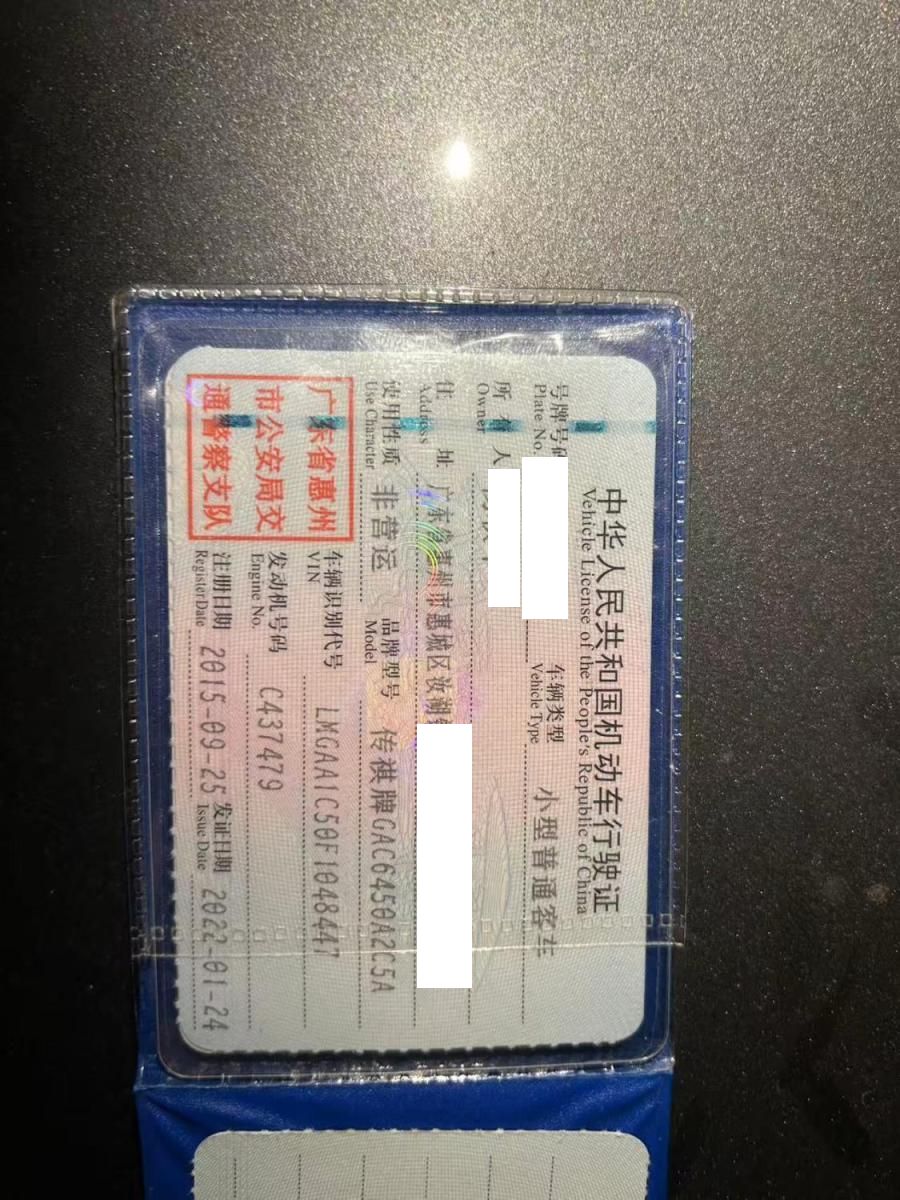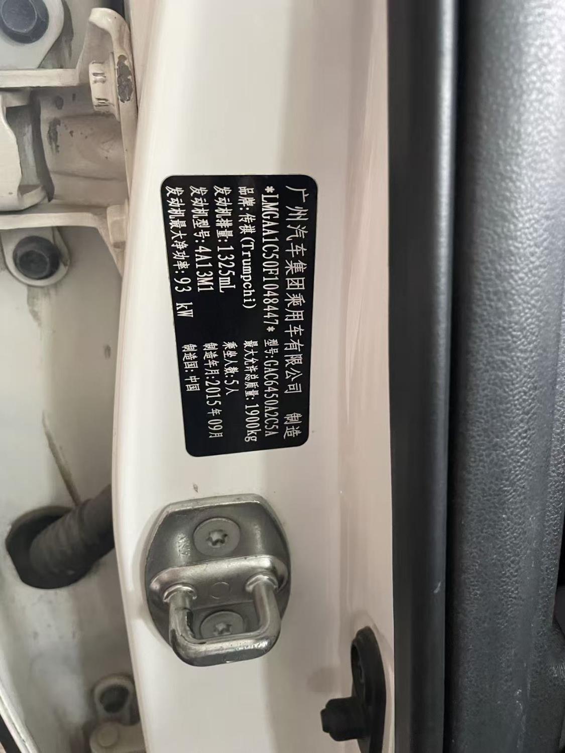 初次登记日期 2015-09-25 车辆名称 广汽传祺