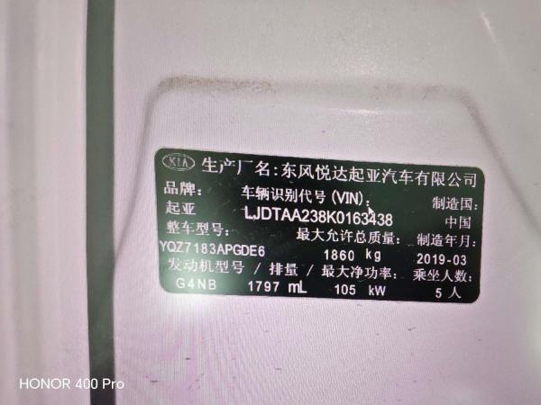 初次登记日期 2019-10-25 车辆名称 起亚 凯绅