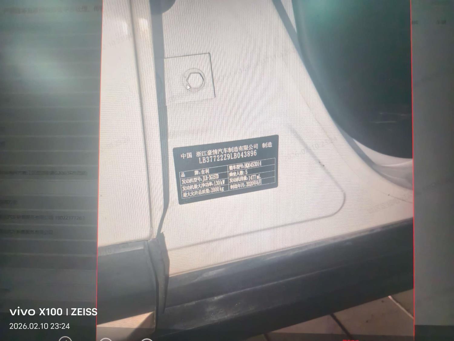 车牌号 川****** 品牌 吉利